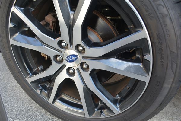 冬場に暖房を使うようになって、しばらくした頃から室内送風が微妙に排ガス臭くなってました。 初めは気のせいかとも思ってたんですが、どうにも臭い。 症状を分析してみると ・油温が上がって送風口から温風が出る状態で、街乗り等の比較的低速での運転で臭う。 ・郊外走行などである程度の速度でストップ&ゴー無しで流しているときはあまり臭わない。 という状態だったので エンジンルーム内で排気系から排ガス漏れがあり、低速走行時にエンジンルーム内に籠った排ガスが走行風で抜けきらない場合に、エアコン用吸気口から排ガスが室内に流入している可能性が大きいと判断しました。 インプレッサスポーツは歩行者保護エアバックが標準装備されているので、エンジンルーム内に吸気口がある設計なので…。 年末の事前打ち合わせで、ディーラーに点検を依頼したら「ちょっと早いですが12か月点検もしてしまいましょう」という流れになり、オイル&オイルフィルターの交換も併せて依頼しました。 点検してもらった結果、エキマニとエキパイを繋ぐフランジ部分のボルト6本中4本が緩んでいるのが判り、増し締め修正となりました。 多分、これで暖房時の排ガス臭はしなくなると思います。 ついでに、購入時からアルミホイールの内側のブレーキダスト汚れが気になっていたので、 12ヶ月点検でホイールを外すタイミングでホイール内側洗浄も依頼しました。 だがしかし… |